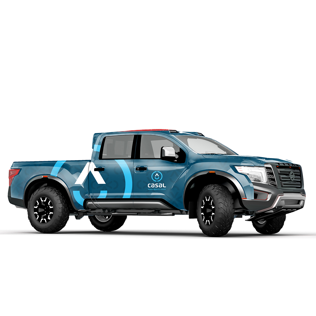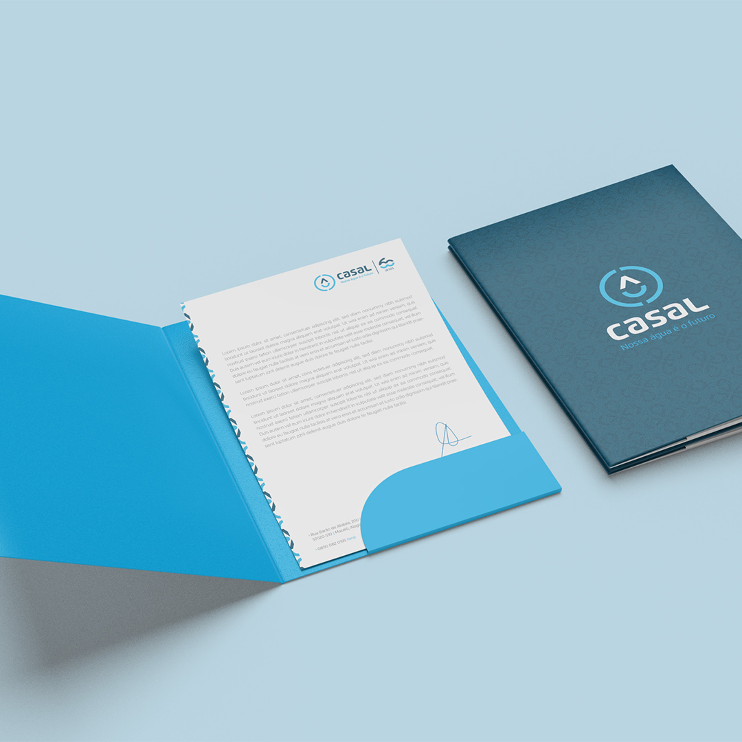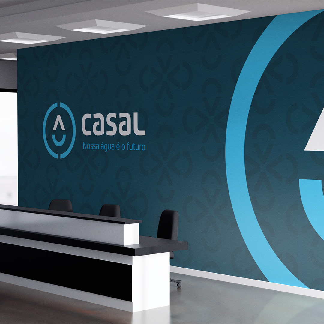 O nosso trabalho consistiu no desenvolvimento de um projeto de identidade visual abrangente, ancorado no posicionamento "Nossa água é o futuro". O novo símbolo foi construído a partir de uma síntese geométrica poderosa que une diversos conceitos: a gota representa a essência do negócio (água); o grafismo de uma casa simboliza o destino final e o acolhimento; e uma seta positiva aponta para o crescimento e evolução. A forma curva inferior evoca um sorriso, conferindo uma personalidade amigável e humana à instituição. Para o lettering, utilizámos a tipografia Flexo, que equilibra características humanistas e tecnológicas, garantindo uma leitura moderna e versátil. Além da marca principal, desenvolvemos o selo comemorativo de aniversário e um sistema visual completo aplicado em frotas, sinalização de obras, papelaria e uniformes, consolidando a Casal como uma empresa preparada para os desafios do amanhã.