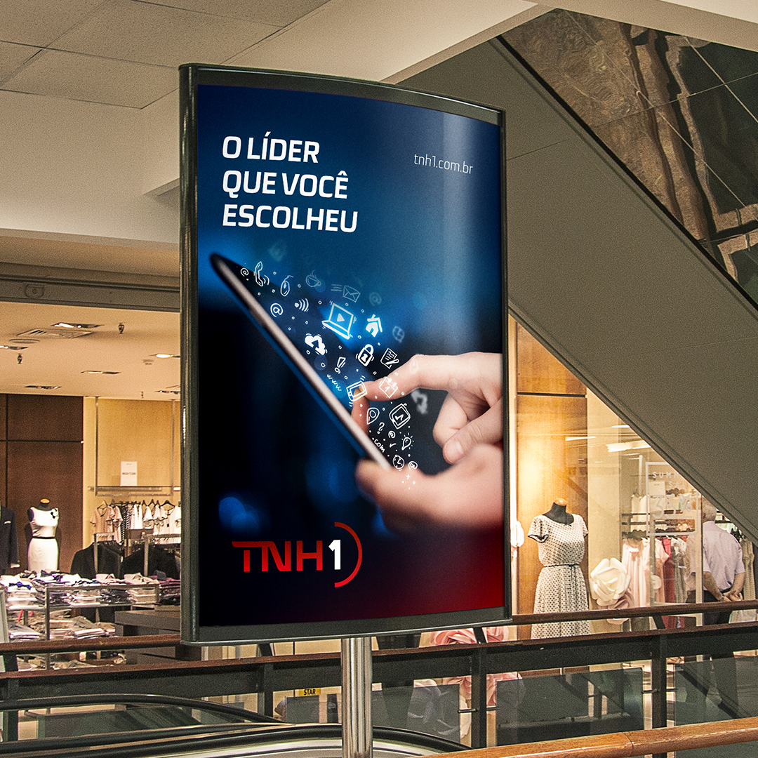 O nosso desafio foi desenvolver um projeto de identidade visual que refletisse o posicionamento de "líder que você escolheu" e o conceito de "conteúdo de primeira". O logótipo foi construído com uma tipografia moderna e robusta, onde o numeral "1" é o protagonista, simbolizando a liderança e a primazia da notícia. Estruturámos a identidade através de um sistema de cores dinâmico para as diferentes editorias: azul para Notícias, verde para Desporto e magenta para Entretenimento, facilitando a hierarquia de informação e a experiência do utilizador. Além da interface do portal, o sistema visual foi aplicado em sinalização de frotas, uniformes de imprensa e materiais promocionais, consolidando o TNH1 como uma marca multiplataforma, ágil e essencial para o quotidiano alagoano.
